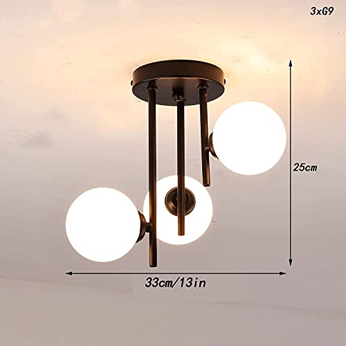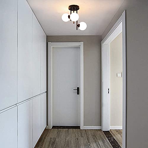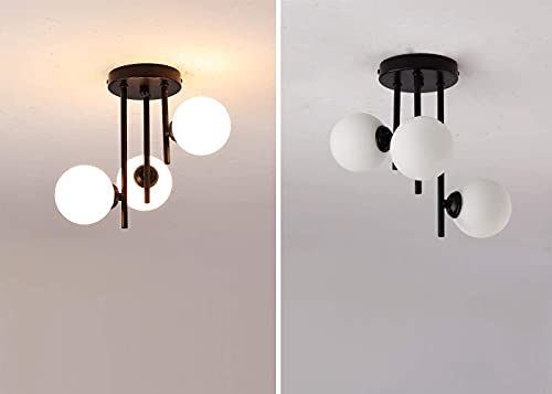 Specification: LANTING Flurlampe Decke Modern, LED Deckenlampe Flur 3 Flammig, Deckenleuchte Schwarz Metall, Küche Lampe Kugel Glas Lampenschirm inkl. Kaltweiß Licht 6000K G9 Glühbirne Ø33xH25 cm