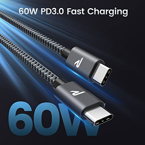 RAMPOW USB C naar USB C-kabel, 60 W, USB C-kabel, PD 3.0, USB C-oplaadkabel, snellaadkabel, voor Samsung Galaxy S22/S21, iPad Pro, iPad Mini 6, iPad Air 5, MacBook Air, Xiaomi – grijs/1 m