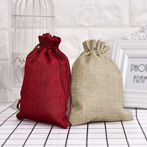 Specification: Funkprofi 30 x Jutesäckchen, 20 x 15 cm Säckchen Stoffbeutel mit Kordelzug, Leinenbalkentasche Leinentasche für Schmuck Geschenk (Naturfarben + Weinrot)