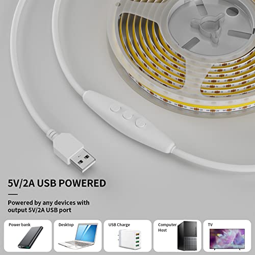 Lichtere witte USB-ledstrip: in vergelijking met SMD 2835: 1-chip aan boord of 5050: 3-chip aan boord beschikt een COB-ledlamp (chip on board) over meerdere chips op dezelfde printplaat (printplaat), 640 chips op deze COB ledstriplampen, die de uitstraalende eenheden ongekend dicht bij elkaar staan. brengen en een super gelijkmatige Verlichtingsvermogen genereren