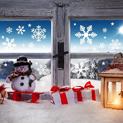 Alintor 348 Raamafbeeldingen voor Kerstmis, kerstdecoratie, raam, pvc, geen lijm, stickers, Kerstmis, zelfklevend, raamdecoratie, kerstdecoratie voor binnen, winterdecoratie (sneeuwvlokken + ster)